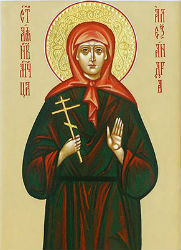 Раба Христова и избранница Пречистой Его Матери, Киевского удела Ее жительница и молитвенница, земли Ее обетованной искательница, Дивеевского монастыря первая руководительница и создательница, молись о нас, Александра преподобная, да спасет нас Пресвятая Богородица и помилует Святая Троица, да избавимся мы от адских мук и наследуем райское блаженство.